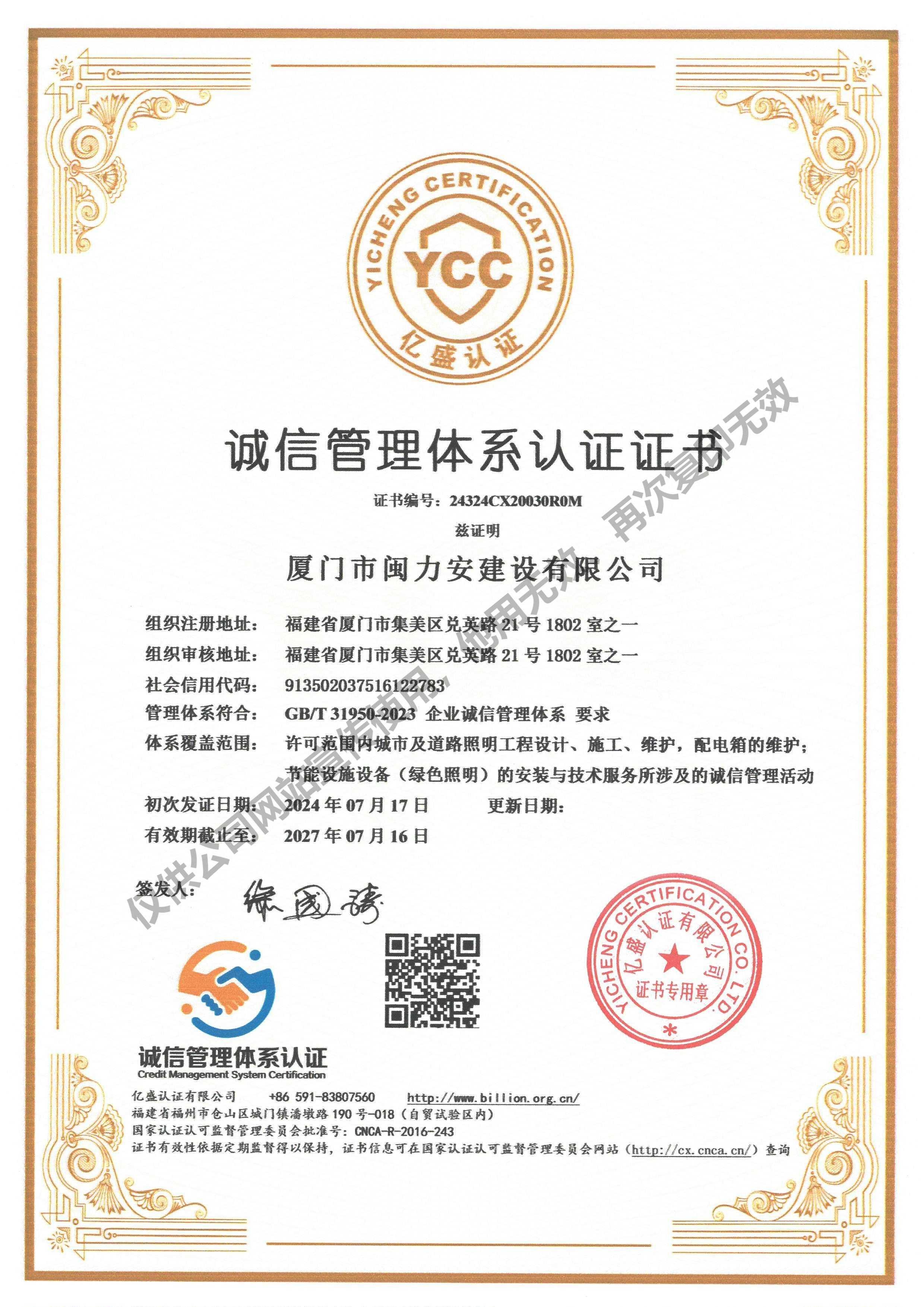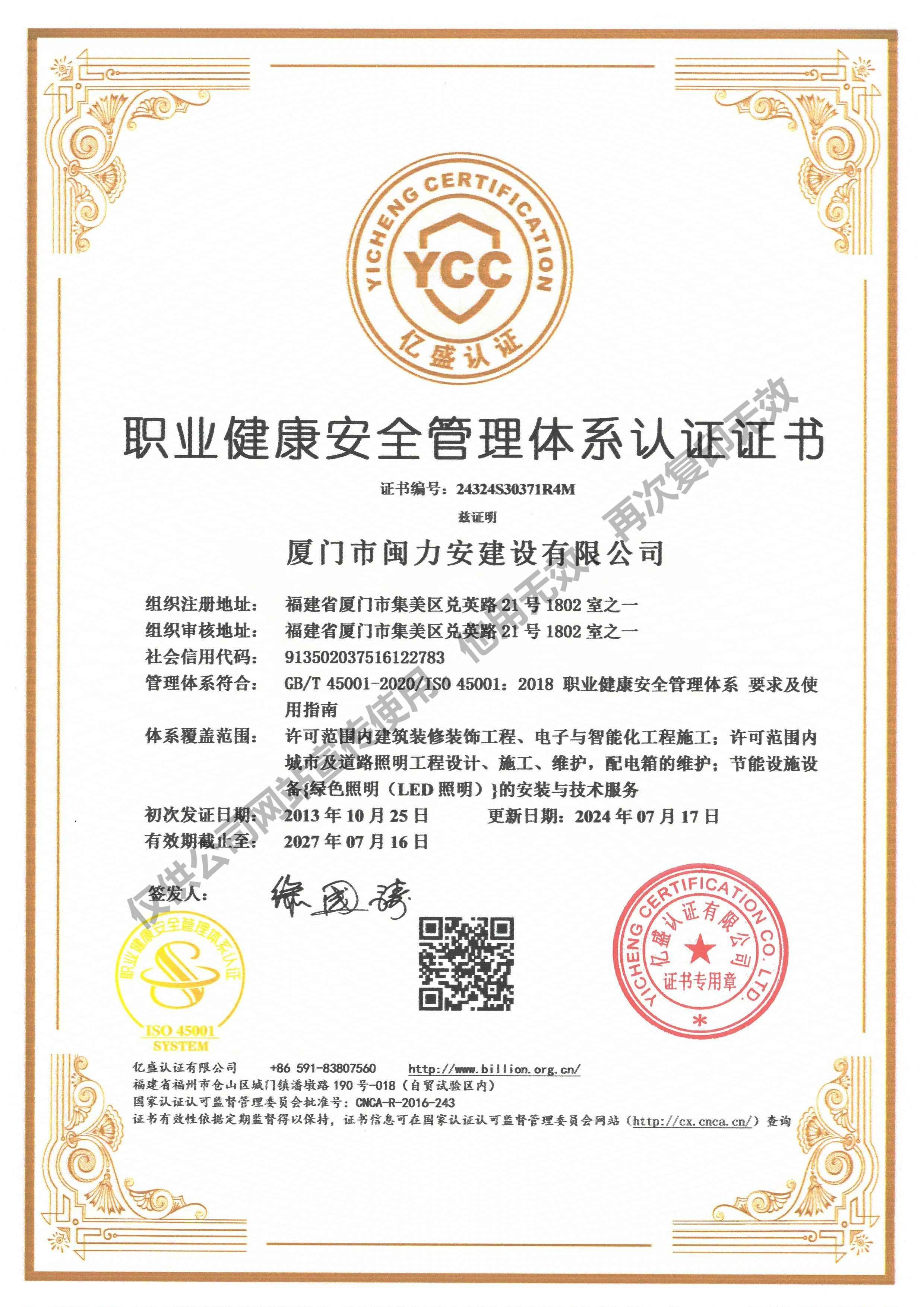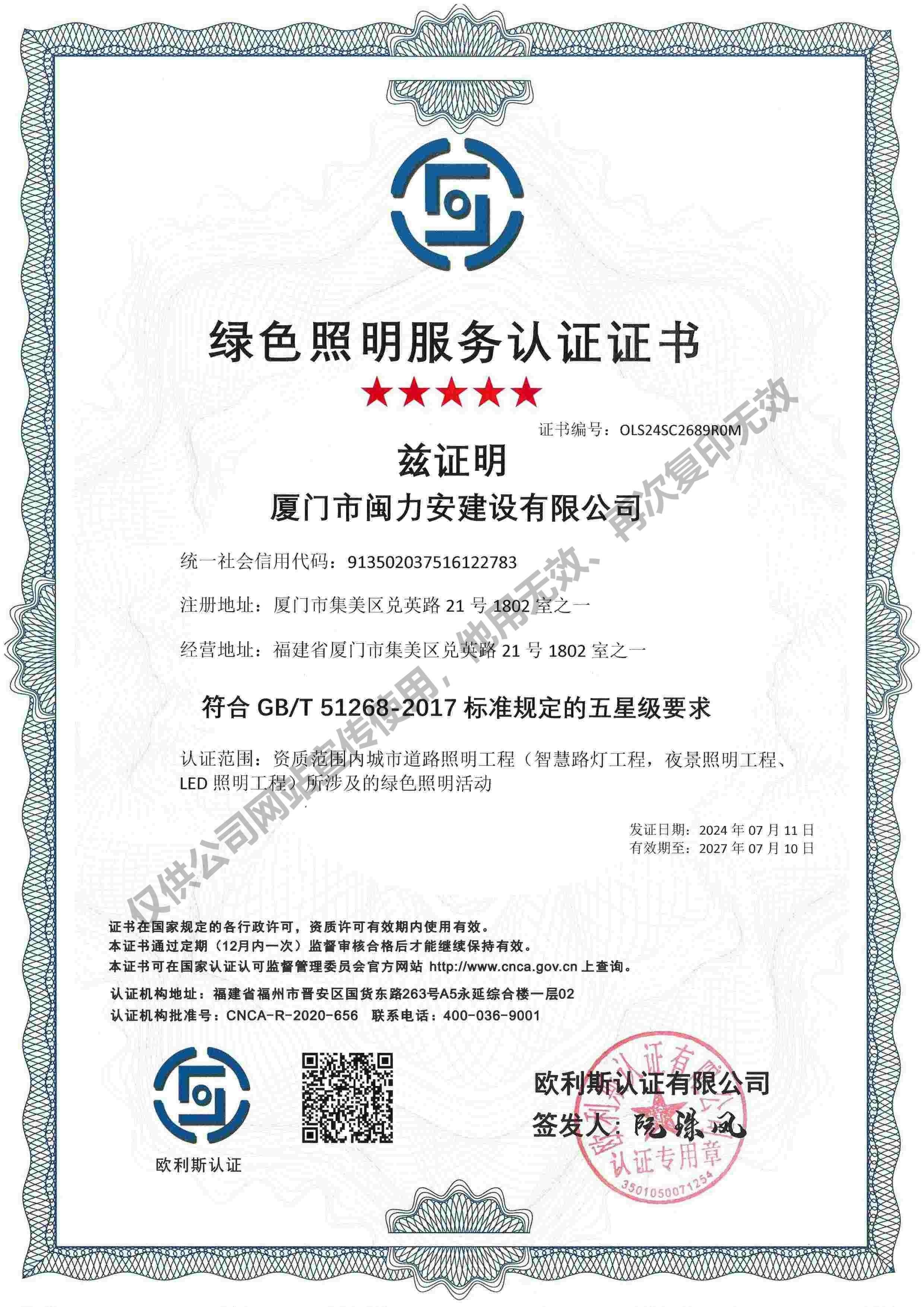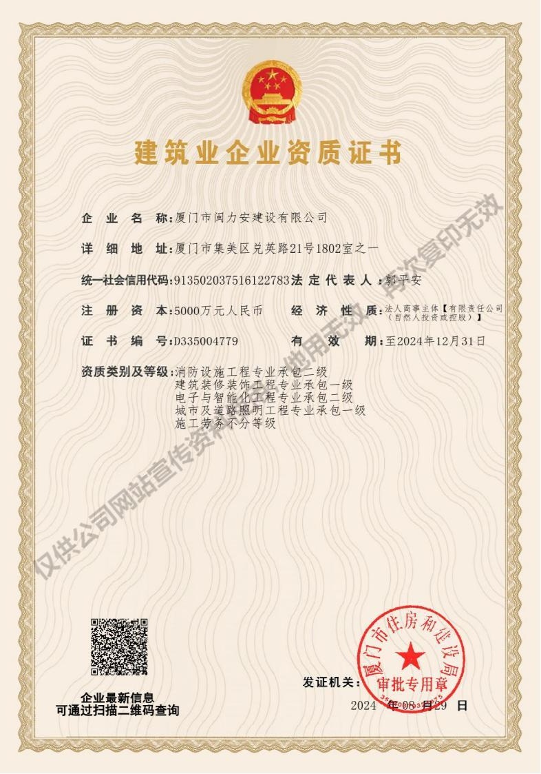 廈門市閩力安建設(shè)有限公司成立于2003年,公司取得市政公用工程施工總承包貳級(jí)、建筑裝修裝飾工程專業(yè)承包壹級(jí)、城市及道路照明工程專業(yè)承包壹級(jí)、電子與智能化工程專業(yè)承包貳級(jí)、消防設(shè)施工程專業(yè)承包貳級(jí)、電力工程施工總承包叁級(jí)、建筑機(jī)電安裝工程專業(yè)承包叁級(jí)、輸變電工程專業(yè)承包叁級(jí)、環(huán)保工程專業(yè)承包叁級(jí)、照明工程設(shè)計(jì)專項(xiàng)甲級(jí)、建筑裝飾工程設(shè)計(jì)乙級(jí)、施工勞務(wù)等資質(zhì)的綜合型企業(yè),公司于2013年通過(guò)了ISO9001質(zhì)量體系認(rèn)證,ISO14001環(huán)境管理體系認(rèn)證,OHSAS18001職業(yè)健康安全管理體系認(rèn)證。